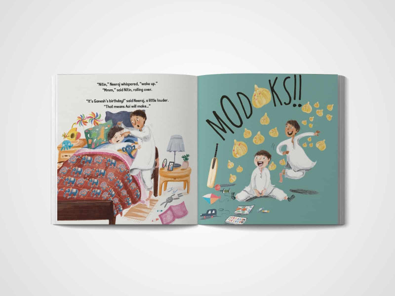 It’s a big day for Neeraj and Nitin: they are helping Ai and Baba get ready to celebrate Ganesh Chaturthi. As they run errands, clean their room and put up decorations, there is a very important question they can’t stop thinking about: how many modaks will they get to eat? This sweet tale includes authentic details of the food, clothing and traditions surrounding Ganesh Chaturthi. It can be read aloud to toddlers and read independently by older children.