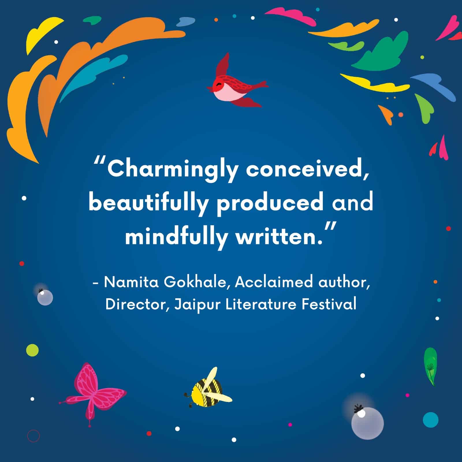 This bilingual picture book written in verse by Anjali Jaipuria introduces young readers to the colourful sights and gentle sounds of nature. Anjali Jaipuria’s rich yet easy-to-read verse and Sudeepti Tucker’s vivid illustrations will transport you and your child right into the world that Radha and Krishna live and play in.