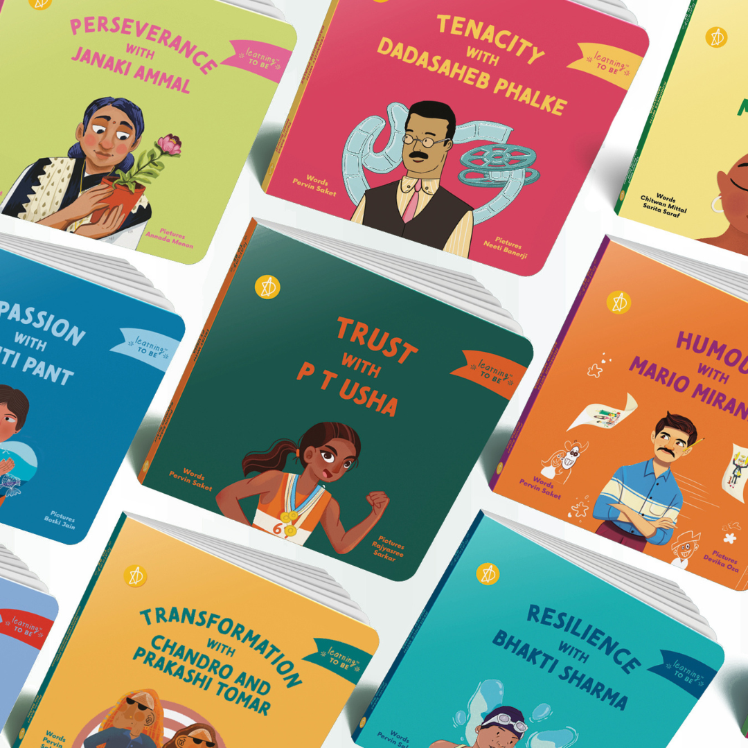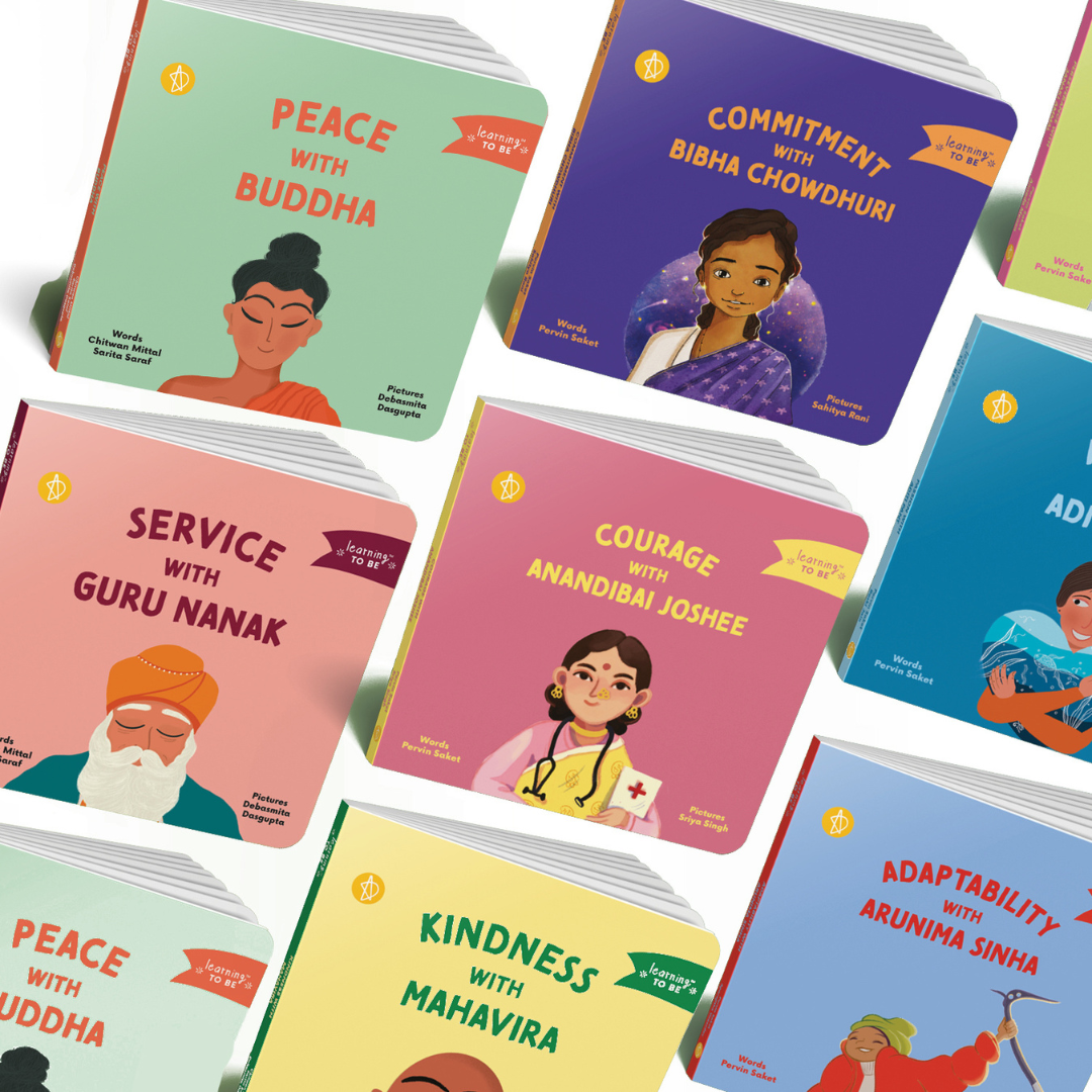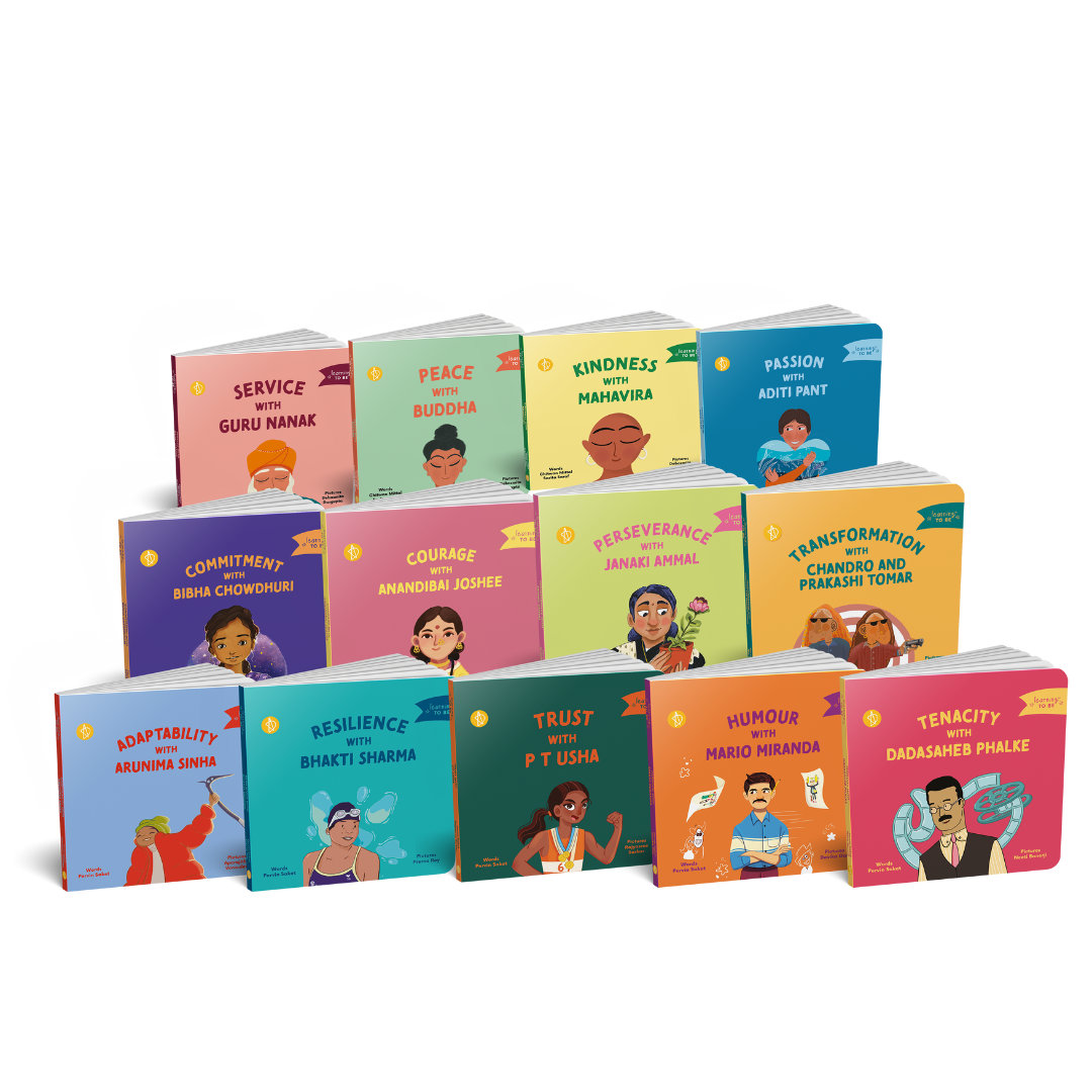 Set of 13 books ( Anandibai Joshee (doctor), Passion with Aditi Pant (oceanographer), Commitment with Bibha Choudhuri (physicist), and Perseverance with Janaki Ammal (botanist), Peace with Buddha, Service with Guru Nanak and Kindness with Mahavira,)