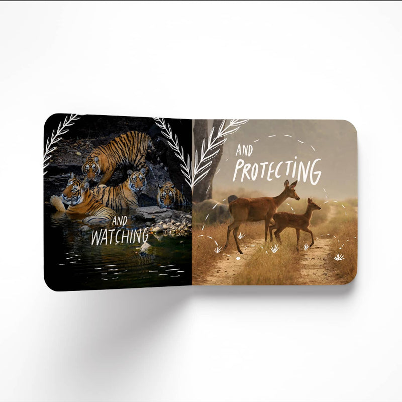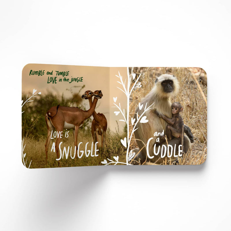 Rumble Tumble Love in the Jungle is a board book in rhyme featuring spectacular photos of wild animals with their babies and families. The visuals come together with rhyming verse to showcase the many ways in which we all, humans and animals alike, express our love to those we care about. A great way to integrate socio-emotional learning into your child’s reading journey, and start conversations about family bonds, love and the connections between all living things!